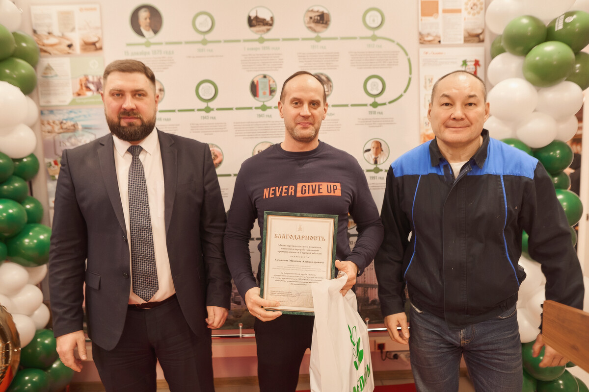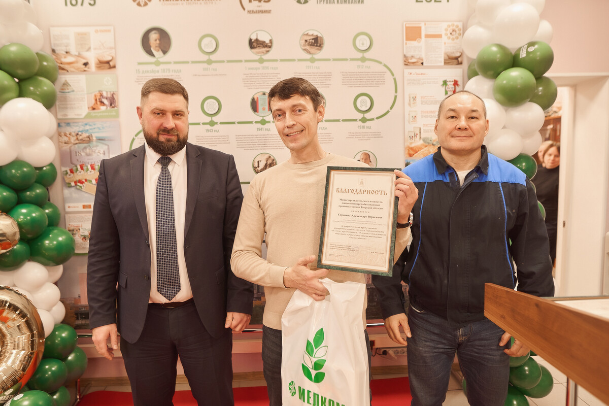 17 декабря 2024 года на территории тверского «Мелькомбината» состоялось торжественное награждение в честь 145-летия предприятия. Коллектив и руководство принимали поздравления от губернатора Тверской области Игоря Рудени и министра сельского хозяйства К.И. Каравайного. Почти 50 лучших сотрудников получили почётные грамоты и благодарности за вклад в развитие комбината от регионального Минсельхоза и руководства компании.