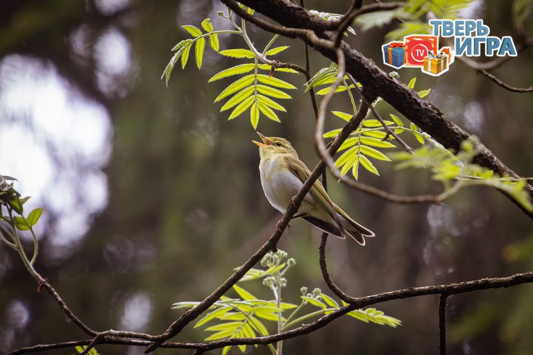 Правильный ответ: пеночка-трещотка (Phylloscopus sibilatrix) - птица семейства славковые отряда воробьеобразные. Верхняя часть тела зеленого цвета, грудь, брюшко и подхвостье чисто-белые. Брови, щеки и шея спереди - желтые. Название пеночка получила из-за своего пения, схожего со звучанием музыкального инструмента трещотки.