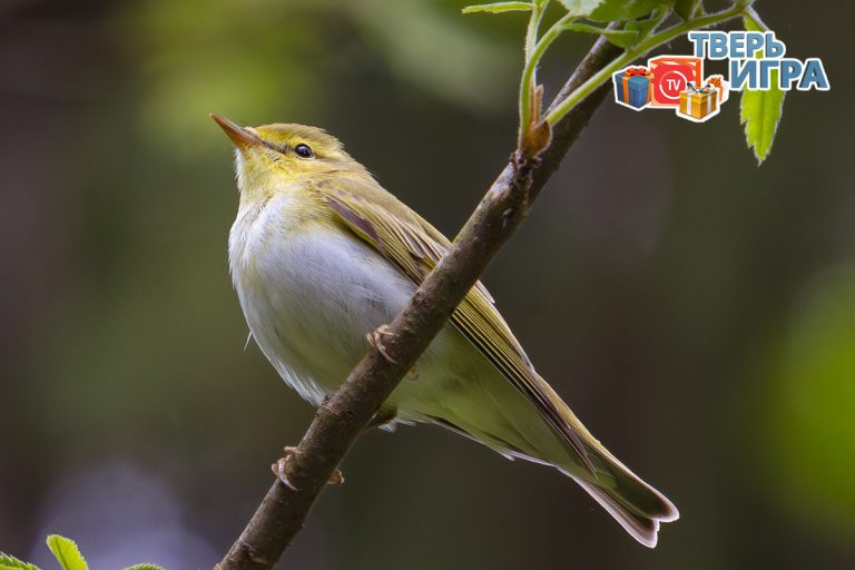 Правильный ответ: пеночка-трещотка (Phylloscopus sibilatrix) - птица семейства славковые отряда воробьеобразные. Верхняя часть тела зеленого цвета, грудь, брюшко и подхвостье чисто-белые. Брови, щеки и шея спереди - желтые. Название пеночка получила из-за своего пения, схожего со звучанием музыкального инструмента трещотки.